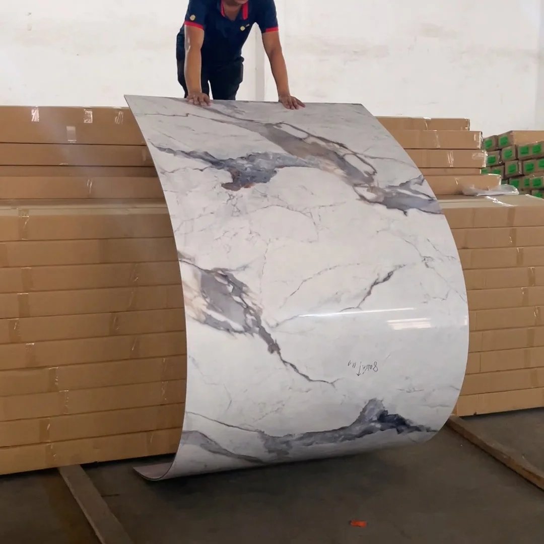 Melinco Eco-friendly Formaldehyde-free Natural Bamboo Fiber Solid Wallboard Laser Printing Seamless Wall Sheet with High Glossy Effect